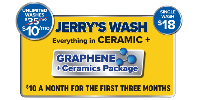 Facebook-f Instagram WE CARE. IT SHOWS. Family-owned, community-driven — at Jerry’s, every wash shows how much we care. Newsletter Sign Up Unlimited Wash Club Why Our Unlimited FAST PASS Is a Game-Changer: ConvenientWash as often as you’d like, up to once a day AffordableBest prices around town FastEnjoy priority service for members Hassle-FreeNo contracts or long-term commitments Wash Packages Go Unlimited. Go Fast Pass. Only $10/mo for the first three months! That’s an unbeatable value! Lexington Jacksboro FIRST MONTHLY ONLY PRICING Purchase Plan Protect Your Ride with Our Graphene Coating & Ceramic Mix! 01 Superior Durability 02 Enhanced Gloss and Shine 03 Unmatched Water Repellency 04 Long-lasting Protection Against the Elements JOIN OUR COMMUNITY Follow Us On Social Media Facebook Instagram